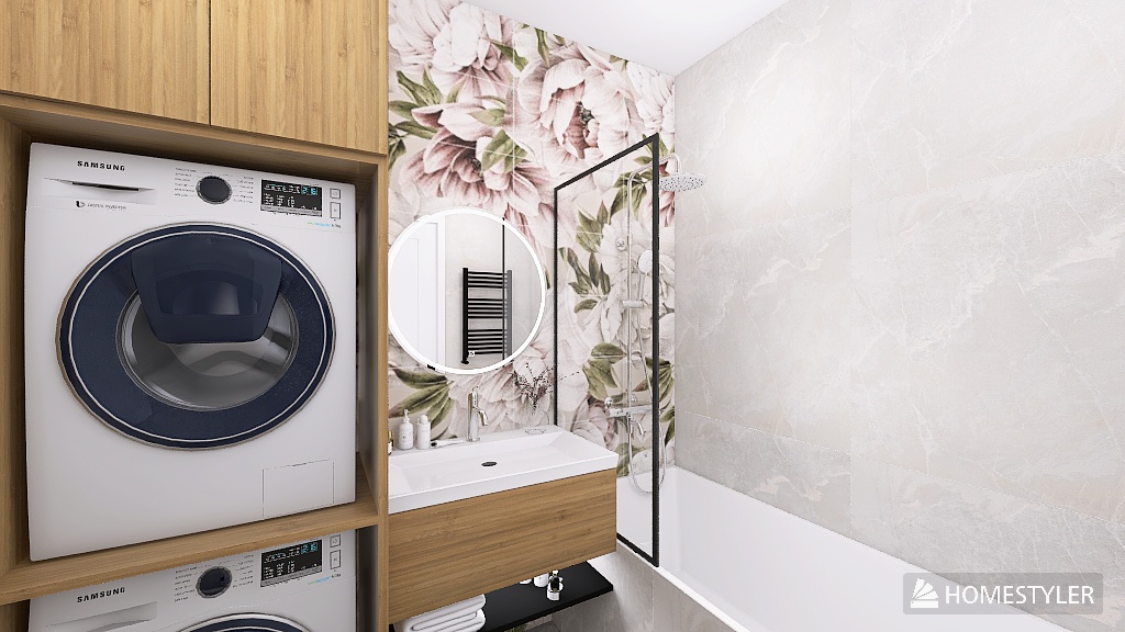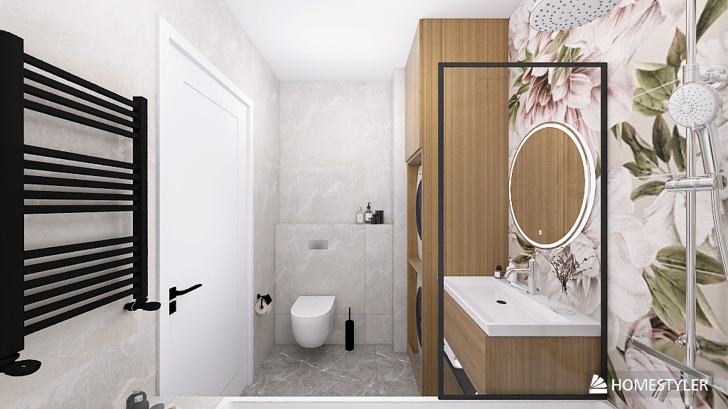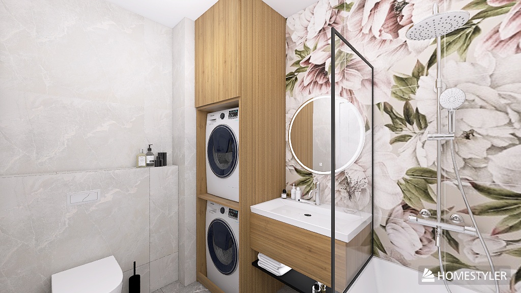 Ta łazienka pokazuje, że obecność natury we wnętrzu nie zawsze musi oznaczać żywe rośliny 🌱 ani surowe materiały. Czasem wystarczy motyw, który oddaje jej rytm i charakter. Tutaj tę rolę przejmują płytki z delikatnym, kwiatowym wzorem 🌸 – miękkie, akwarelowe formy wprowadzają do przestrzeni lekkość, spokój i subtelną elegancję. To one budują nastrój i stają się główną osią całej aranżacji – bez nadmiaru, bez chaosu, bez potrzeby dodawania kolejnych dekoracji.