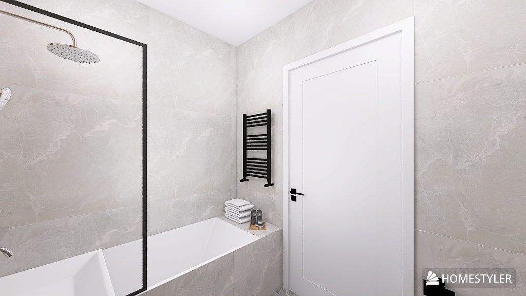Drewno ociepla przestrzeń i nadaje jej miękkości, biel wprowadza światło i porządek, a czarne detale – ramy, grzejnik i armatura – dodają całości wyrazu i nowoczesności. Każdy element ma tu swoje miejsce i funkcję – od zabudowy pralki i suszarki, przez prostą formę umywalki, po przejrzystą, lekką optycznie strefę kąpielową.
