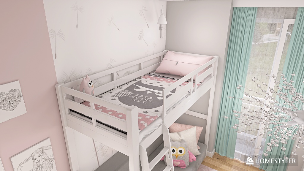 Piętrowe łóżko pełni podwójną rolę 🛏️ Na górze znajduje się przytulna strefa snu, a na dole wygodne miejsce do odpoczynku, czytania i spotkań z przyjaciółkami 💬📖 To rozwiązanie pozwala zachować przestrzeń i jednocześnie tworzy naturalne centrum pokoju.