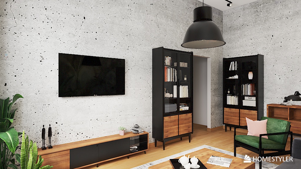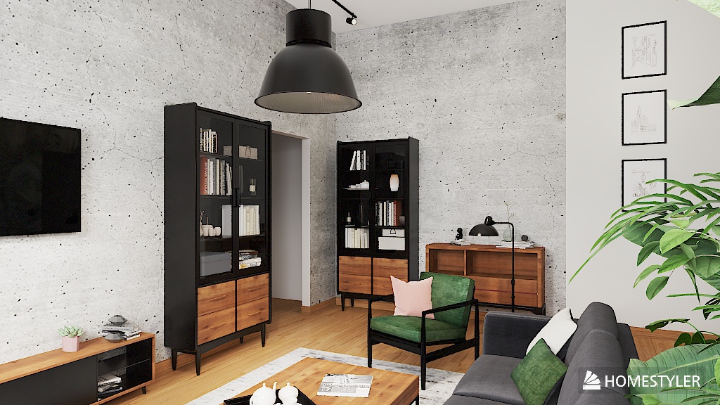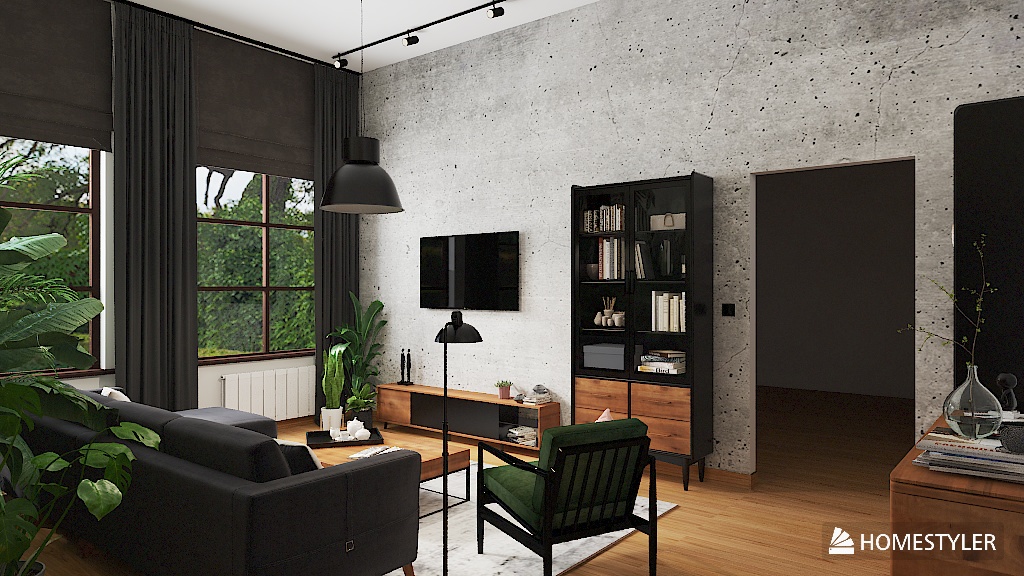 To salon, w którym industrialna prostota spotyka organiczną swobodę – wyrazisty, spokojny i żywy jednocześnie. Dla osób, które cenią autentyczność, charakter i kontakt z naturą – nawet w miejskim wnętrzu.